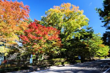 久しぶりに朝からいい天気になり、前回より少しすすんだ紅葉が青空に映えました