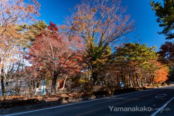 夕焼けの渚・紅葉まつりは前日で終了しましたが、山中湖周辺ではまだ色付いている木々がたくさんあります。