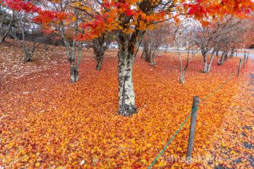 紅葉し始めるのも遅く、ピークは紅葉まつり会期のちょうど真ん中ぐらいの11月8日頃でしたが、きれいに染まっている期間は短かく、落葉しないで枯れてしまった葉も多々ありました。