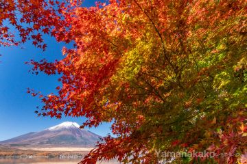 秋になり、富士山から始まる紅葉はだんだんふもとの方に降りてきて、例年10月中旬頃から11月中旬にかけて山中湖では見頃となります。