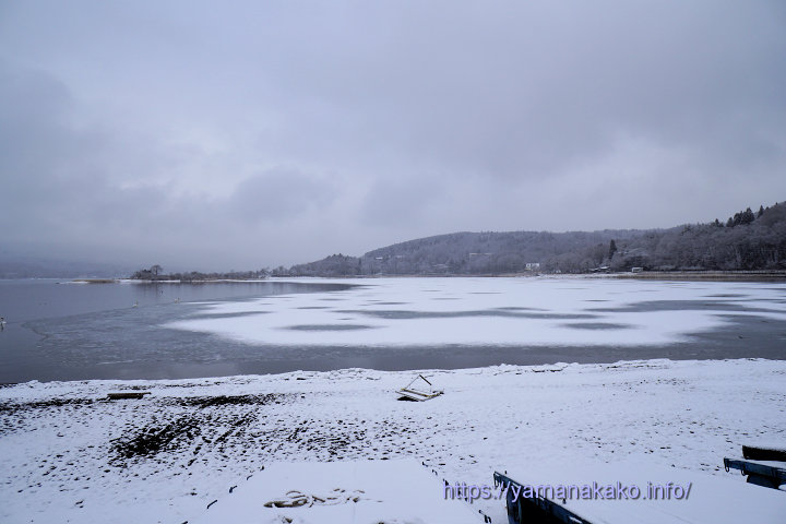 道路状況:山中湖周辺の道路には積雪箇所あり