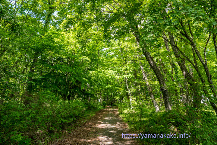 朝の散歩も爽やかで気持ちのいい季節となり、山中諏訪神社裏手にある杜のみち(境内散策路)は、新緑がとても美しく、思わず深呼吸したくなるような感じになりました。秋には紅葉がきれいで、夕暮れ時にはムササビが飛ぶこともあるこの「杜のみち」での散歩はおすすめです。