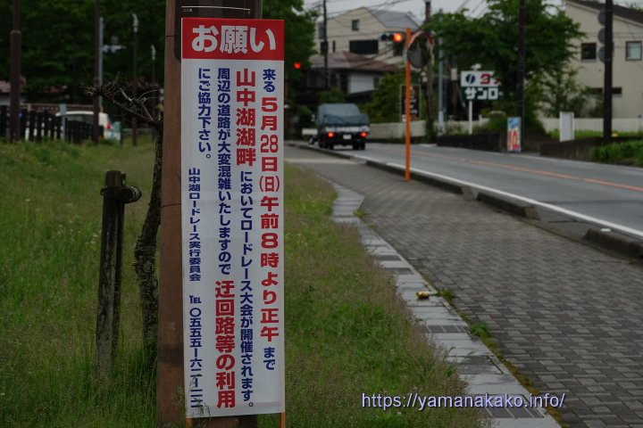 28日(日)に第43回スポニチ山中湖ロードレースが開催されます。そのため、午前中は湖畔周回道路を中心に大幅な交通規制がございますので、迂回路等の利用にご協力くださいますようお願いします。詳しくは山中湖ロードレースに伴う交通規制をご覧ください。