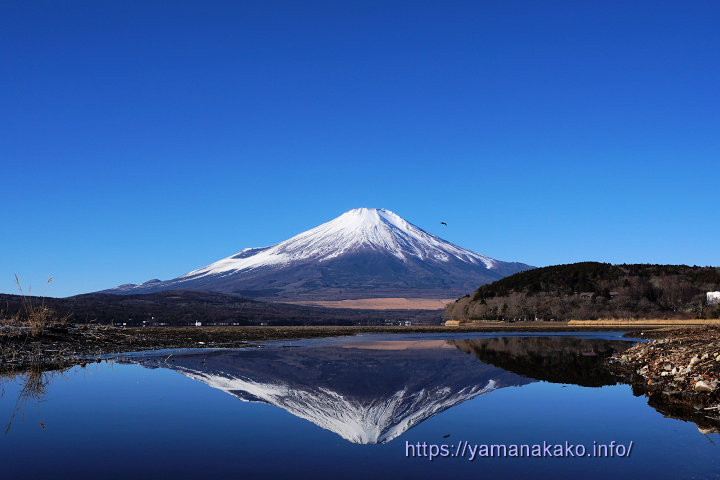 24年01~04月 川面に映る逆さ富士 2024年1月12日 山中湖人 コメントする 青空の下に逆さ富士今日は朝からいい天気で、きれいな富士山が見えていて、風もなく穏やかだったので、川面に映る逆さ富士がきれいでした。 今朝の最低気温は-9.5度で、もう少しで二桁となるところでしたが、9時前にはプラス気温となり、すでに昨日の最高気温の3.2度は超えました。日中は8度まで上がる予報となっています。 明日明後日もいい天気ですが気温はあまり上がらない予報となっています。 午前10時の状況 気温:5度 天候:晴れ 道路状況:山中湖周辺道路に凍結はありません Tweet Check Share on Tumblr