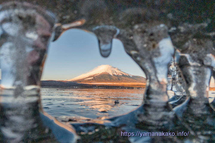 25年01~04月 氷の間から望む富士山 2025年2月6日 山中湖人 コメントする 氷柱の間から望む富士山今朝は今シーズン一番の冷え込みで、湖の多くに氷が張っていて、ボートの下にあったつららが下の氷とつながり、まさしく氷柱となっていたので、その隙間から富士山を狙ってみました。 前述のように今朝は冷え込み、最低気温は-13.0度まで下がり、いい天気で晴れていますが、9時現在の気温は-3度となっています。昨日の最高気温は0.9度でしたが、今日はそれを超えるでしょうか。 午前9時の状況 気温:-3度 天候:晴れ 道路状況:山中湖周辺主要道路に凍結はありません Tweet Check Share on Tumblr