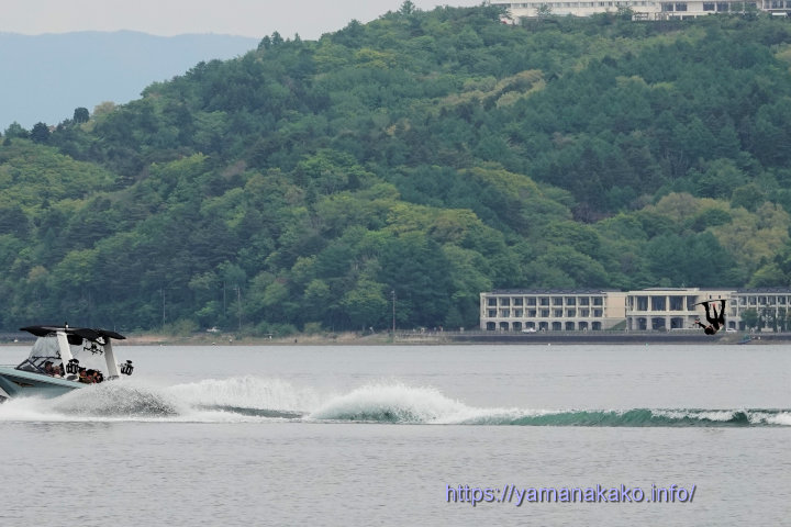 本日より18日(日)まで山中湖の旭日丘地区湖畔にて、ウェイクボードやウェイクサーフィンなどのアマチュアからプロまでが参加して、ウェイクシリーズ第1戦山中湖大会が開催されております。土日はケータリングも出店予定で、17日(土)19時30分頃(雨天の場合は翌日に順延)からは打ち上げ花火も予定しております。