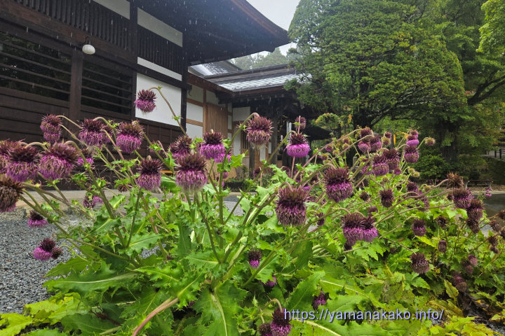 先日、白い花のフジアザミ(シロバナフジアザミ)を投稿しましたが、普通のフジアザミを投稿していなかったので、たくさん咲いている寿徳寺にいってきました。ここでは毎年、お彼岸の頃に満開となりますが、今年はその頃に確認できなかったので、今日行ってみたところ終盤となっていましたが、まだきれいな花も残っていました。ここには大イチョウもあって10月末から11月初旬にかけて黄葉します。