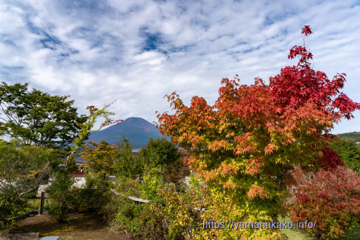 紅葉と富士山30日に投稿したように色付いた木々を見かけるようになり、写真のように1本の木で、緑から赤までのグラデーションがきれいなものもあるので、全体的には紅葉の見頃はまだまだ先ですが、こんな木を探すのも楽しいです。