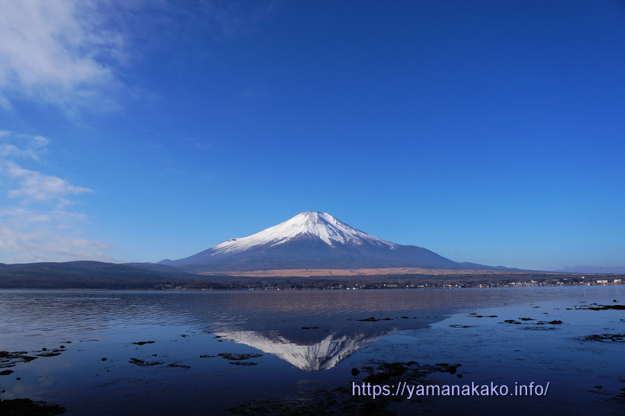 25年09~12月 逆さ富士 2025年12月19日 山中湖人 コメントする 湖畔の逆さ富士湖畔の浅瀬になっているところでは、波が少なく、その近くにある石や藻などが気にならなければ、逆さ富士が見られる場所があります。そんな場所を探して見るのもいいかもしれません。 今朝の最低気温は-5.1度で昨日より低く、10時現在の気温も昨日よリ2度近く低くなっています。昨日の最高気温は8.2度と、一昨日までよりは上がり、今日も同じぐらいまでは上がる予報となっています。 明日明後日の週末は曇りや雨の天気で、気温は高めの予報となっていますが、さてどうでしょう。 午前10時の状況 気温:4度 天候:晴れ 道路状況:山中湖周辺道路に凍結はありません Tweet Check Share on Tumblr