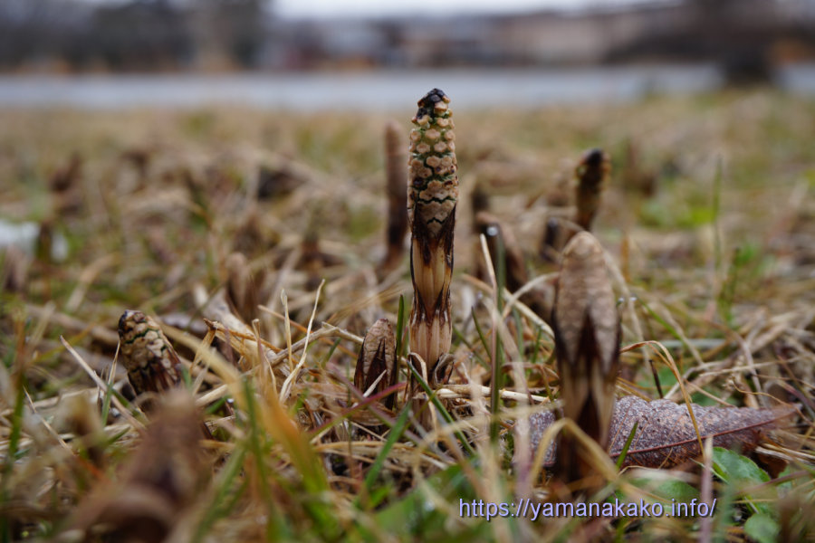 26年01~04月 つくしが出てきた 2026年3月23日 山中湖人 コメントする 道端のつくしそろそろつくしも出るだろうと思っていましたが、なかなか確認に行く機会がなくて、今朝見たところ、もうたくさん出ていました。もうお彼岸も終わりになってしまいましたが、この様子だとお彼岸の前から出ていたと思います。 土日は氷点下で寒い朝でしたが、今朝は最低気温が1.5度とあまり下がりませんでした。ただ、雨が降ったりやんだりしていてあまり気温は上昇していません。ここのところ、最高気温は10度を超えていましたが、今日はそこまで上がらないかもしれません。 午前10時の状況 気温:5度 天候:曇り 道路状況:山中湖周辺道路に凍結はありません