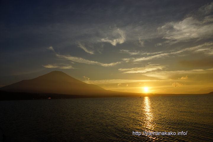 サンセットタイム@山中湖畔赤富士、青富士ときたので、黄色を狙って、まだ太陽が見えている昨日の夕刻に旭日丘湖畔から撮ってみましたがいかがでしょうか。黄富士と呼べるでしょうか。って無理があるかな。この後、夕焼けを待っていましたが、上の雲があまり赤くならずいまいちでした。