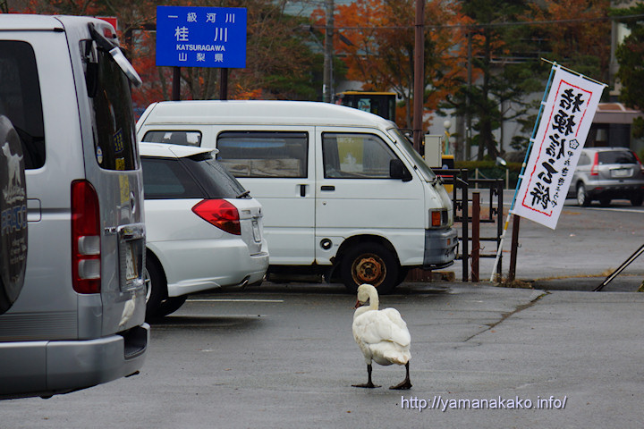 今日は小雨模様で富士山も見えず、ネタ探しにうろうろとしていたら、駐車場を白鳥がうろうろしていたので撮ってみました。ここのところ白鳥が道路や駐車場で、歩いている姿をときどき見かけます。他の鳥類と違い、なかなか逃げないのでドライバーの皆さんはご注意ください。