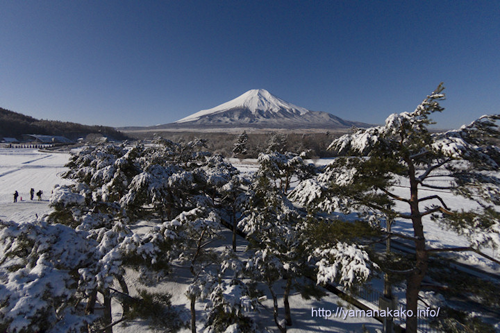 松の木の上から見た富士山昨日の午前中は雨でしたが午後から雪に変わり、10cmほどの積雪となり辺り一面の銀世界となりました。