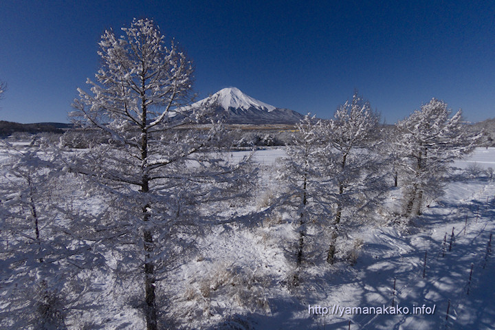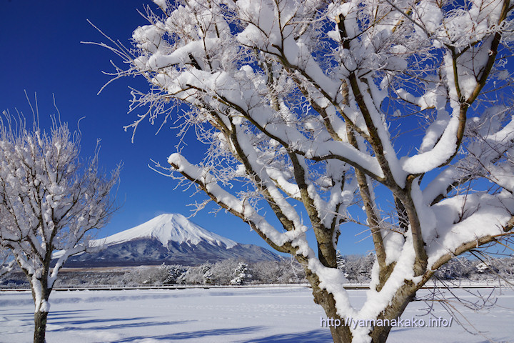 結局、昨日は夕方まで雪が降り続き、40cmほどの積雪となりました。今朝は銀世界の山中湖となり、青空と雪・・・そして富士山と、この時期ならではのすばらしい景色となりました。
