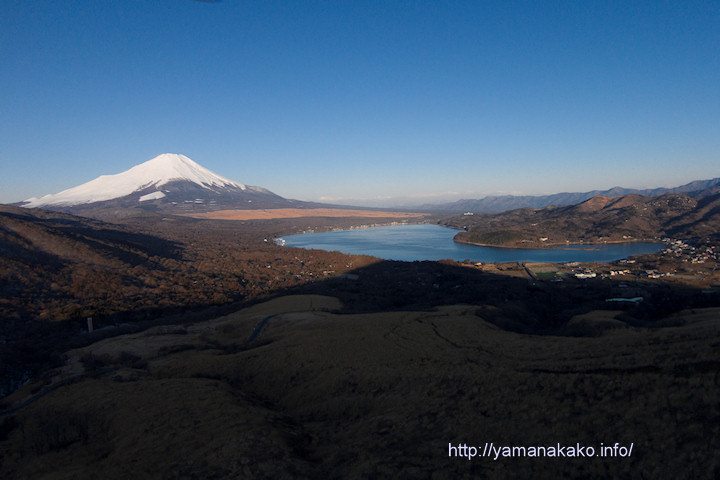 昨日一昨日は、富士山に雲が張り付いていましたが、今朝はすっきりとした富士山で、風もあまり吹いていなかったので、三国峠から明神山に登って行って、富士山と山中湖を撮ってみました。5日にも同じような場所から撮りましたが、今日はさらに上からの写真となります。