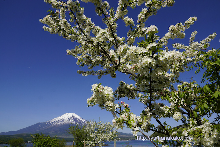 山中湖交流プラザきらら前のエゾノコリンゴ(ズミではないと思う)が咲き始め、つぼみはピンクで花が白いので、まだつぼみが少し残っているぐらいがきれいに見えます。この木の隣にズミの木(たぶん)があり、そちらはつぼみで濃いピンク色になっているので、もうじき咲くと思います。