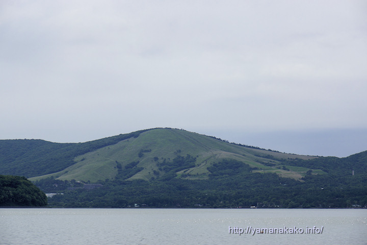富士山眺望スポットである山中湖パノラマ台のある明神山(鉄砲木ノ頭)を、対岸から見るとこんな感じで、ススキの緑がだんだんと目立つようになってきました。パノラマ台から頂上までは30分ほどなので手軽に登れ、晴れていれば富士山に抱かれた山中湖をずっと見ながらの下山となります。山頂には山中諏訪神社の奥宮がありますので、登頂したら参拝はいかがでしょう。