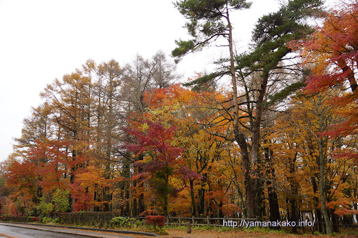 今日は曇りの予報でしたが、雨が降っていてもちろん富士山も見えません。そんな天気ですが、山中湖一周してきました。紅葉まつりが終わって葉を落とした木も増えてきましたが、まだ紅葉しているところもあり道路脇のまだ美しく感じます。この葉っぱがみんな落ちてしまうと、また色数の少ない季節になってしまいます。