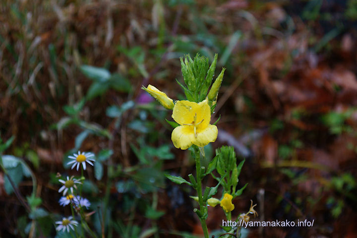 もうすぐ11月が終わるというのに、道ばたで咲いている待宵草を見つけました。こんな時期まで咲いているのはめずらしいと思うので、今年は暖かいってことでしょうか。ちなみにこの近くではコスモスも咲いていたので、日当たりが良く暖かいのかもしれません。