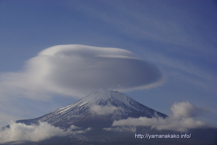 立派な笠雲9時過ぎぐらいから富士山の上に雲が現れ、だんだんと育ち10時過ぎには立派な笠雲になりました。写真は10時半頃のものでなかなかいい形でした。笠雲が出ていると刻々と形が変わるのでなかなかおもしろいです。