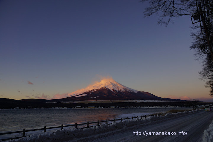 雪の降った翌日なので今朝はきれいな富士山が見られるかと期待しましたが、あまり紅くはならず、山頂付近は大荒れのようで雲がわき出ていました。
