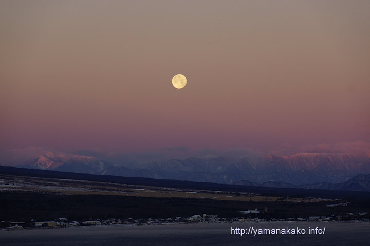 今朝は富士山にもほんのり紅色に染まり、とてもきれいでしたが、南アルプス方面も山々がピンク色に染まり、沈みゆく満月もありとてもきれいな景色でした。