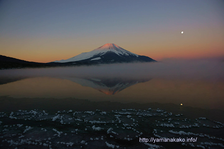 16年01~04月 凍てつく湖畔から逆さ紅富士 2016年1月26日 山中湖人 コメントする 今朝も冷え込み、山中湖はところどころで凍っていて、写真のように氷のないところでは逆さ富士が見られました。 今朝の最低気温は-16.1度と今シーズン一番の冷え込みとなりましたが、この寒波も今日までのようで明日からは気温が上がるようです。昨日一昨日と、日中の最高気温が氷点下の真冬日でしたが、今日はプラス気温になりそうな感じです。 午前10時の気温:-2度 天候:晴れ 道路状況:幹線道路にほぼ凍結はありませんがその他の道路は凍結箇所あり Tweet Check Share on Tumblr