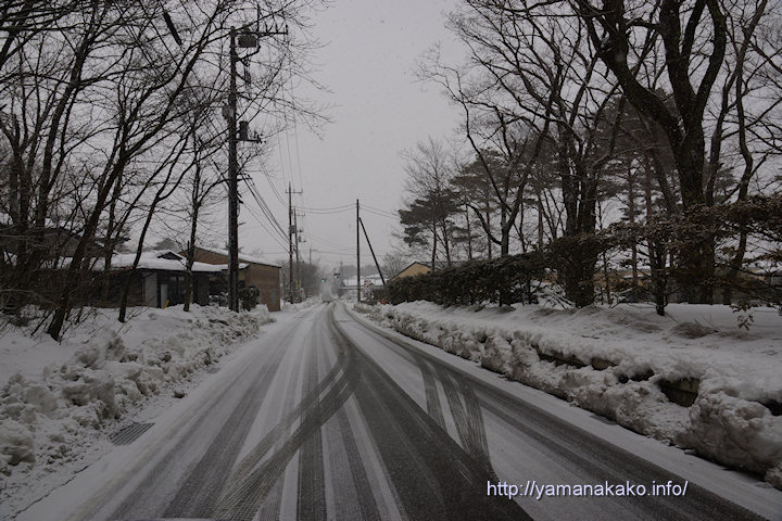 16年01~04月 今日は雪。そして先日の雨氷 2016年2月1日 山中湖人 コメントする 今日は曇りの予報でしたが、8時過ぎぐらいから雪が降り始め、9時頃には写真のように道路も真っ白になってしまいました。 今朝の最低気温は-4.5度と昨日の朝と同じぐらいまで下がりました。ただ昨日の昼間は日差しがあり気温が3度ぐらいまで上昇しましたが、今日は前述のように雪が降っているので、日中も気温はあまり上がらないと思います。 30日(土)は6年ぶりに雨氷が見られ、木々が氷でコーティングされ、キラキラと輝きとてもきれいでした。 午前10時の気温:0度 天候:雪 道路状況:積雪あり注意 Tweet Check Share on Tumblr