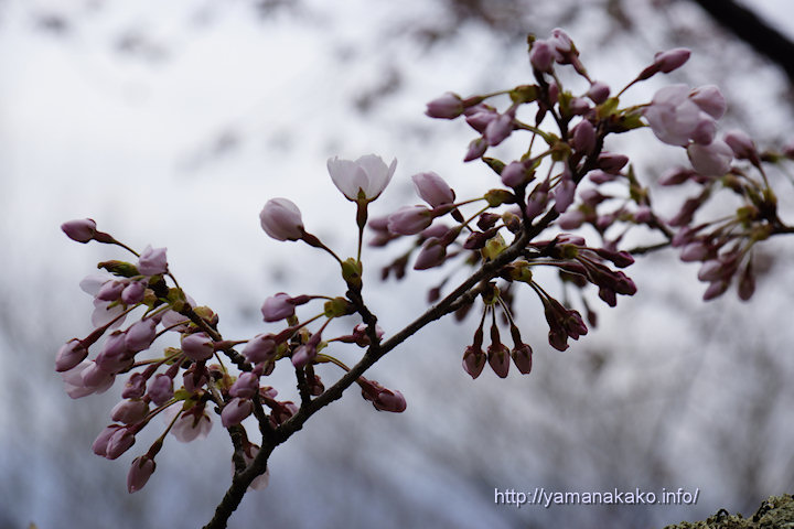 2016桜の開花定点観測VOL.08今日で8回目の定点観測となり、写真のようにやっと咲き始めました。まだほんとに咲き始めなので、この木が見ごろになるのはもう少し経ってからだと思います。ただ明日からしばらく天気が悪いようなので、次に晴れた時に富士山と一緒に満開の桜が見られるといいんですが・・・。