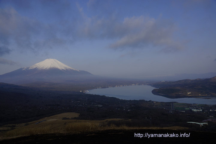 明神山山頂から山中湖と富士山今朝の明神山からの景色