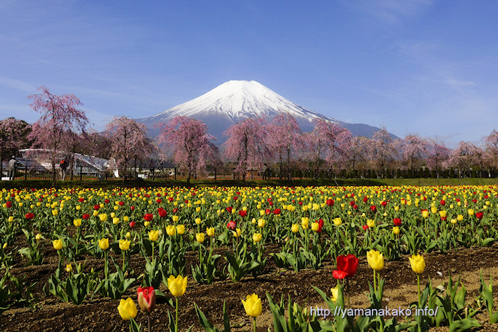 16年01~04月 八重しだれ桜とチューリップ 2016年4月25日 山中湖人 コメントする 先週の初め頃から咲き始めたチューリップは写真のように満開となり、写真奥の八重しだれ桜もだいぶ咲きそろってきて見ごろとなっていますので、明日にはさらに花数が増えて満開になると思います。 先週末の金曜日の最高気温は22.6度と暖かでしたが、昨日の最高気温は13.0度と寒い1日となりました。今朝の最低気温は4.1度と下がりましたが、いい天気で暖かな日差しがあり9時には昨日の最高気温を超えました。 午前10時の気温:14度 天候:晴れ Tweet Check Share on Tumblr