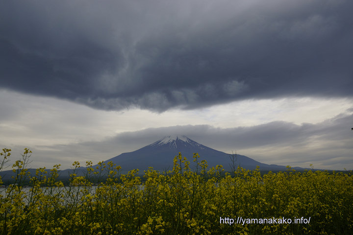 まだ夜が明ける前より富士山には大き雲がかかり、刻々と形を変えて富士山に迫っているようですが、ほとんど同じ場所に停滞している吊し雲となっています。また山頂にもときどき笠雲がかかっているようです。こんな雲の時は天気の崩れる予兆といわれていますが、久しぶりの雨となるでしょうか・・・