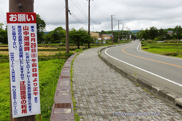 迂回路利用のお願い明後日の29日(日)に第36回山中湖ロードレースが開催されます。それに伴い午前中は湖畔周回道路を中心に大幅な交通規制がございますので、迂回路等の利用にご協力くださいますようお願いします。詳しくは山中湖ロードレースに伴う交通規制( http://urx2.nu/u85E )をご覧ください。
