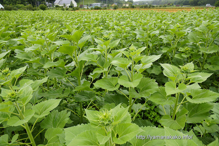 花の都公園のひまわりがだいぶ成長し、つぼみも膨らんできて、ここには写っていませんが花開いたものもありました。例年だと背が低めの150cm位のものが多いのですが、今年は背が高く180cmほどあるので、花が咲く頃には2m位になるかも。今年もひまわり畑は迷路となっているので、背が高い分難しいかもしれません。