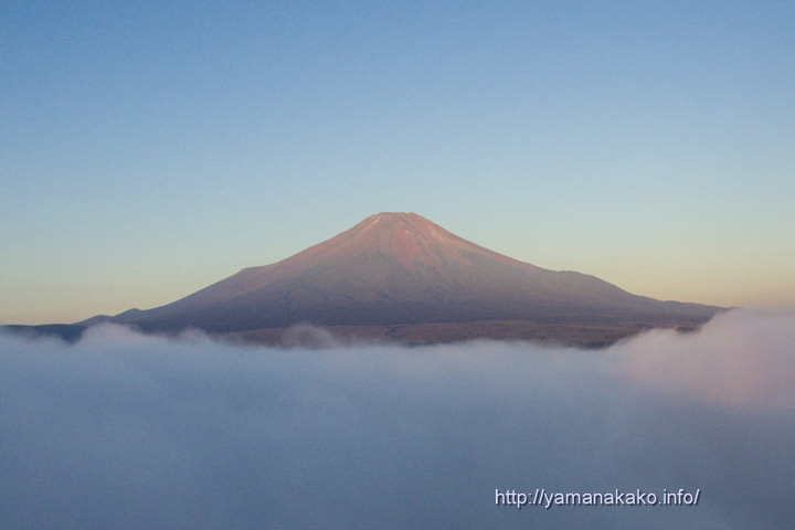 今朝の山中湖は霧で覆われていたために、湖畔から富士山は見えませんでしたが、山の上からは写真のように雲海に浮かぶ富士山が見えました。