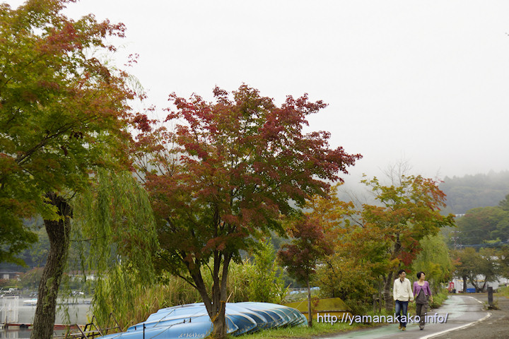 まだ青々とした木々今日は晴れ予報だったが朝から雲が多めで、富士山も朝の内にちょっとだけ見えただけです。今年はこのように曇りや雨の日が多く、また気温も高めのせいか、紅葉も遅れているようで、昨年の10月5日にはかなりいい色に染まっていた木も写真のようにまだ青々としています。