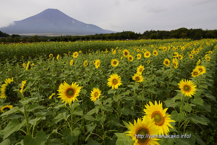 花の都公園のひまわり花の都公園のひまわりは前回投稿した5日よりだいぶ花数が増えて、五分咲き程度となっています。富士山をバックにひまわりを撮るとこんな感じですが、晴れていればもっときれいに見えると思います。