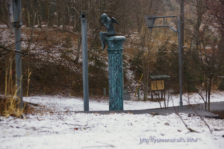 中央に写っている妖精のモニュメントは以前から気になっていたので、ちょっと調べてみたところ、正面下には「WELCOME TO FUJIGOKO」と書かれていて、合併前の富士五湖周辺の9市町村にそれぞれ1基ずつ設置されているようです。富士五湖をめぐりながら、探してみたら意外と楽しいもしれませんのでいかがでしょう。