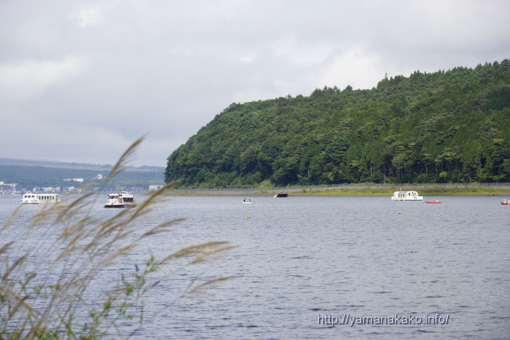 わかさぎ釣りポイントわかさぎ釣りは7月~8月の禁漁期間が終わり、1日より連日ドーム船や釣りボートが出航していて、釣果もまずまずで楽しめているようです。今日は安産祭りのためドーム船は3艇出ているだけでしたが、今の時期はこの写真の場所が釣れるようで土日ともなると、たくさんのボートで賑わいます。
