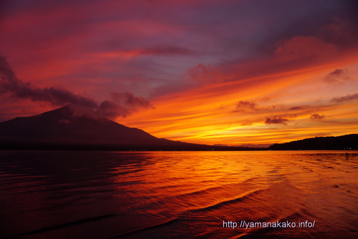 今まで山中湖でこのような夕焼けは見たことないです。