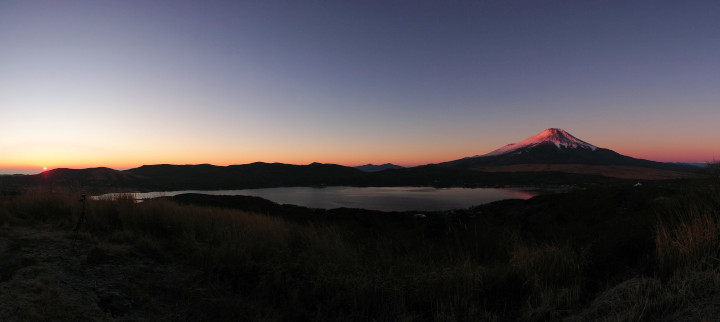 18年01~04月 謹賀新年 2018年1月1日 山中湖人 2件のコメント あけましておめでとうございます。本年もよろしくお願いいたします。 今朝は先日に続き、早朝より大平山に登り、初日の出と初富士(紅富士)そして山中湖を一望してきました。昨日の天気だと今日は見えないかと心配しましたが、写真のようにきれいな景色を見ることができました。 今朝の最低気温は-7.2度で昨日一昨日よりは少し下がりましたが、日中の気温は上がり、最高気温は6.0度で昨日より暖かくなりました。 午後4時の状況 気温:3度 天候:晴れ 道路状況:山中湖周辺の道路に凍結はありません Tweet Check Share on Tumblr