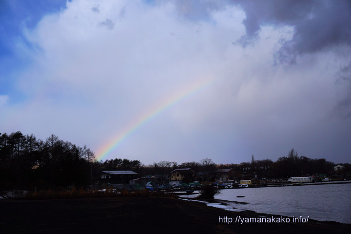 18年01~04月 虹は裾だけ 2018年3月1日 山中湖人 1件のコメント だんだんと青空が広がり虹が少し出ていたので、アーチになるのを待ってみましたが、ここではこれが精一杯でした。 昨日の夜遅くから雨が降り出し、その頃は気温も低めで日付が変わってすぐの頃に、今日の最低気温の1.2度を記録しましたが、その後は雨が強くなり気温もぐんぐんと上昇し、雨の上がったころには10度を超え、とても暖かくなっています。ただこの後は風向きが変わり、夜にはまた寒くなってくるようです。 午前10時の状況 気温:12.1度 天候:晴れ 道路状況:山中湖周辺の主要道路に凍結はありません