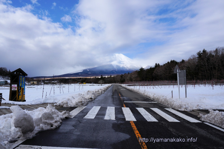 道路状況:山中湖周回道路に凍結はありませんが、その他脇道などには残雪あり