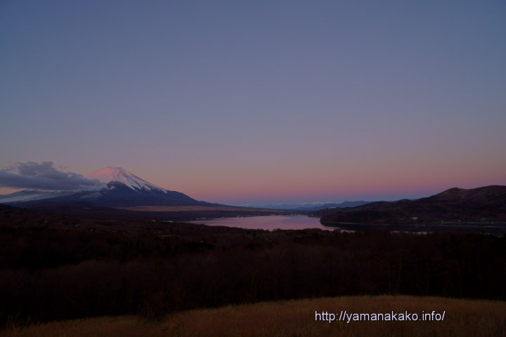 富士山頂に日が当たる頃、南アルプスの上空にあるビーナスベルトと地球影がとてもきれいに見えます。紅富士を湖畔から狙うのもいいですが、パノラマ台から刻々と変化するビーナスベルトと地球影もなかなかいいです。