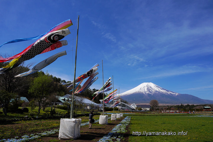 富士より高い鯉のぼり富士より高~い♪鯉のぼ~り~♪・・・そんな感じの鯉のぼりが、花の都公園で泳いでいました。今日は久しぶりに朝からいい天気なので、ネモフィラやチューリップが見頃となっている花の都公園は、9時頃には第一駐車場が満車になるほど混雑していました。