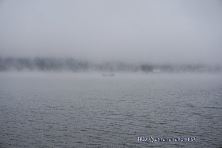 19年09〜12月 けあらしと霧 2019年10月16日 山中湖人 コメントする けあらしと霧の山中湖今日は気温より湖の水温の方がずいぶんと低いので、けあらし(正式には蒸気霧)が発生し、その上には霧も出ていて、ドーム船や対岸は薄ぼんやりとしか見えませんでした。 前述のように今日は気温が低く、今のところの最高気温は1時50分に記録した10.9度で、そこから気温はだんだんと下がり、最低気温は9時4分に記録した8.2度となっています。今はちょっと気温が上昇しましたが、まだ10度以下の寒い日となっています。 午前11時の状況 気温:9度 天候:曇り Tweet Check Share on Tumblr