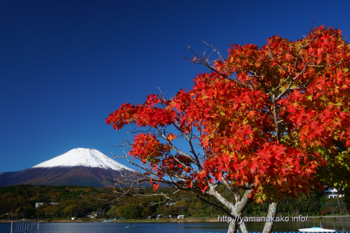 昨日、富士山初冠雪が発表されましたが、山中湖からは見ることができず、今日は青空の下に見ることができたので、前回投稿したモミジと一緒に撮ってみました。やっぱり富士山には雪が似合います。