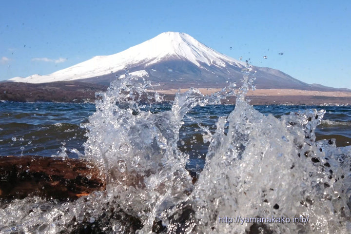 波しぶき今朝は風が吹いていて、風下の平野湖岸は波があったので、波しぶきを狙ってみました。例年だと湖畔は凍っていて、石や木の枝などは氷でコーティングされているので、氷と富士山を狙っていましたが、今年は暖かく、ほんの少し氷があるくらいとなっているので、そんな情景は見られないかもしれません。