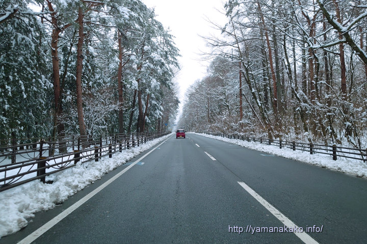山中湖道路状況:山中湖周辺の主要道路に積雪はありませんが、その他の道路には積雪箇所あり