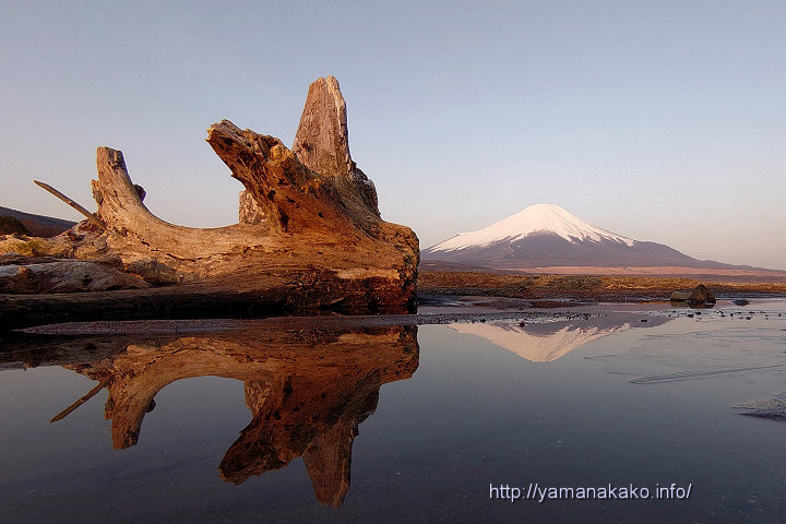 20年01〜04月 逆さ富士 2020年4月3日 山中湖人 コメントする 木の根と逆さ富士昨日と違い、今朝は風もなく穏やかで、湖畔では逆さ富士が見られ、大きな木の根が転がっていたのでそこで撮ってみました。 今朝の最低気温は-4.3度と冷え込みましたが、7時前にはプラス気温となり、昨日に近い温度まで上がってきました。今日は晴れ予報となっているので、日中はもう少し気温が上がりそうです。 桜の開花状況 Vol.02午前10時の状況 気温:9度 天候:晴れ 2020 桜の開花定点観測 Vol.02 今日は日が当たってないので比べづらいですが、昨日とあまり変化はありません。 Tweet Check Share on Tumblr